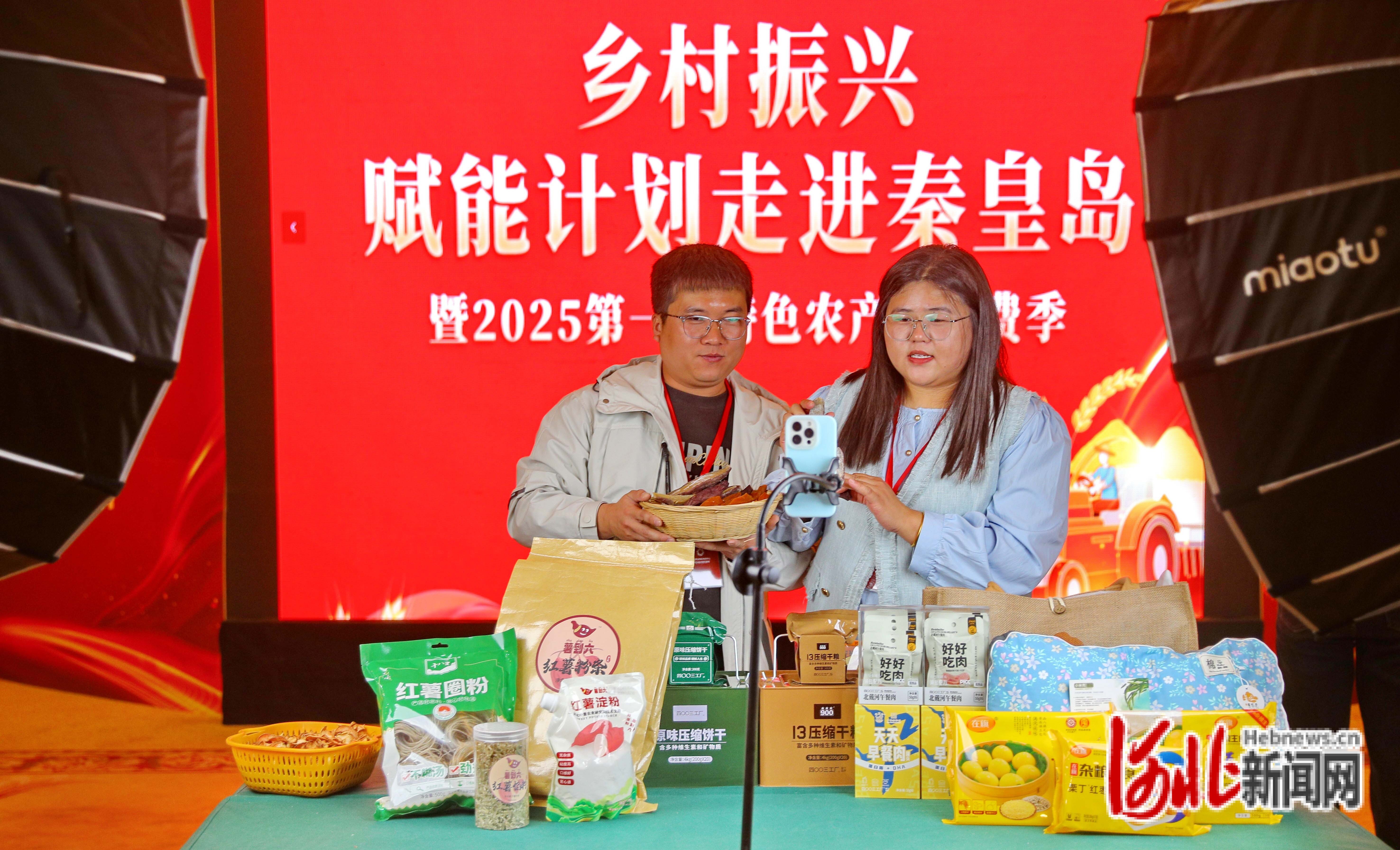 4月13日,为期两天的乡村振兴赋能计划走进河北秦皇岛暨2025第一届特色农产品消费季活动在秦皇岛市海港区举行,通过现场展示罐头、板栗、薯粉等秦皇岛特色产品,并由工作人员使用网络平台向网友进行推广,为助农兴农架起一座“云端鹊桥”,推动特色农产品的销售与发展,促进地方经济增长。