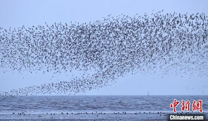 河北滦南南堡嘴东湿地鸟群。(资料图) 郑文忠 摄