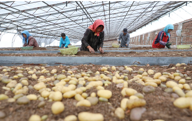 产业链的激活,带来乡村的蝶变。每年四月春播时节,坝上大地热闹非凡。田间地头,戴着各色头巾的妇女们手法娴熟地切着马铃薯籽种,动作行云流水;薯农们沿着田埂弯腰播种,每一个动作都饱含着对丰收的期盼;那些拥有先进农机农械的“新型薯农”,凭借高效的作业能力,成为各镇各村争相预约的“香饽饽”。无论世代务农的老农,还是充满朝气的“新农人”,他们都拥有一个共同且响亮的名字——“坝上薯农”,在马铃薯产业带动下,共同描绘着乡村振兴的美好图景。