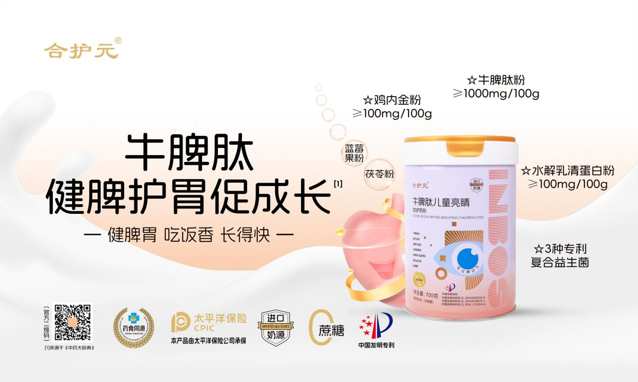 牛脾肽儿童亮睛功护奶粉,为孩子们的脾胃健康成长带来了全新的选择。牛脾肽粉是这款奶粉的特色成分,添加量 1000mg/100g,每罐高达 7000mg,再加上鸡内金粉、蓝莓果粉、茯苓粉、麦芽粉、山药粉、山楂粉、陈皮粉等成分的加入,药食同源,进一步增强了奶粉对孩子脾胃的滋养作用。对于经常积食、厌食偏食不长肉、个子矮小长不高、免疫力低下的孩子来说,这款奶粉是很好的选择。