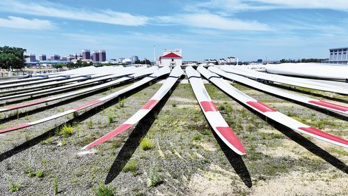 7月4日,在张北艾郎风电科技发展有限公司,一支支风电叶片整齐排列,等待发往外地。 吴孟忱摄