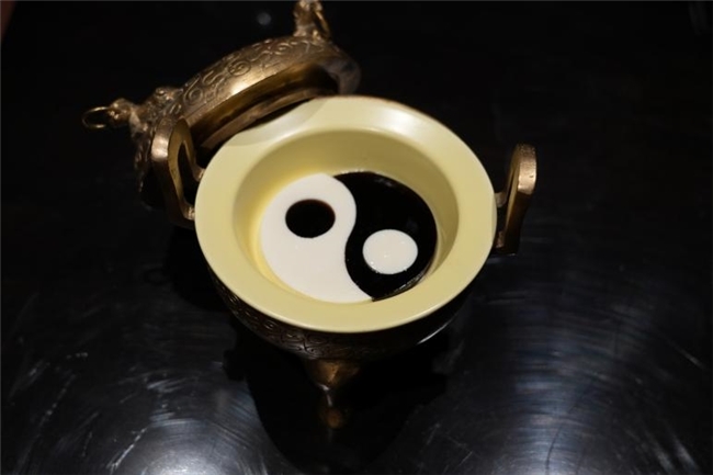 餐桌上,每道佳肴都是颠覆想象的文化密码。“琥珀炆玉环” 恰似和氏璧化身,晶莹豆腐浸在琥珀色高汤中,轻抿一口,仿佛尝到了赵国宫廷的奢华滋味。而太极八卦造型的龟苓膏,表层焦糖纹路随着音乐流转,恰似阴阳二气在舌尖交融,让人惊叹美食与文化竟能如此浑然天成。