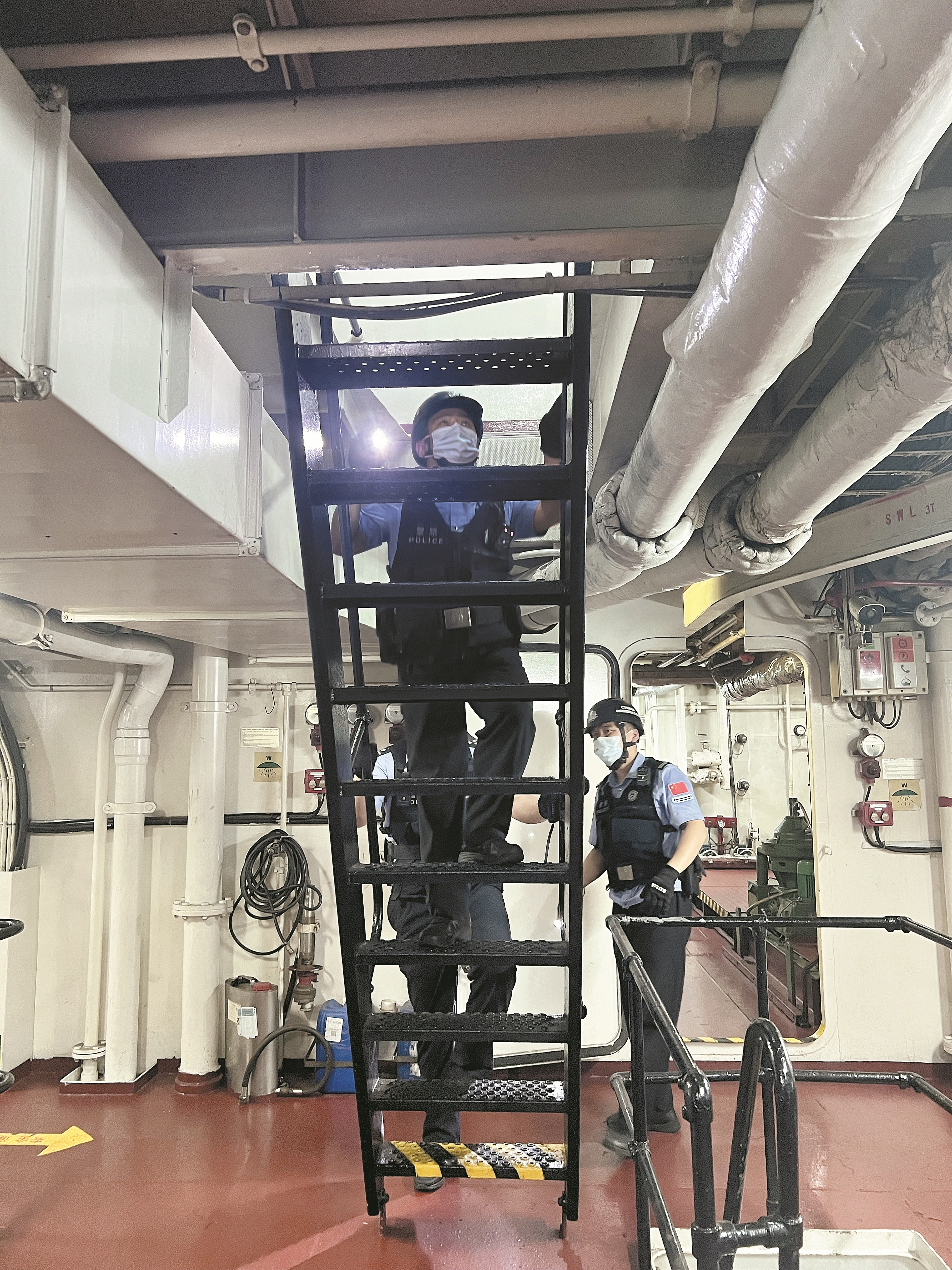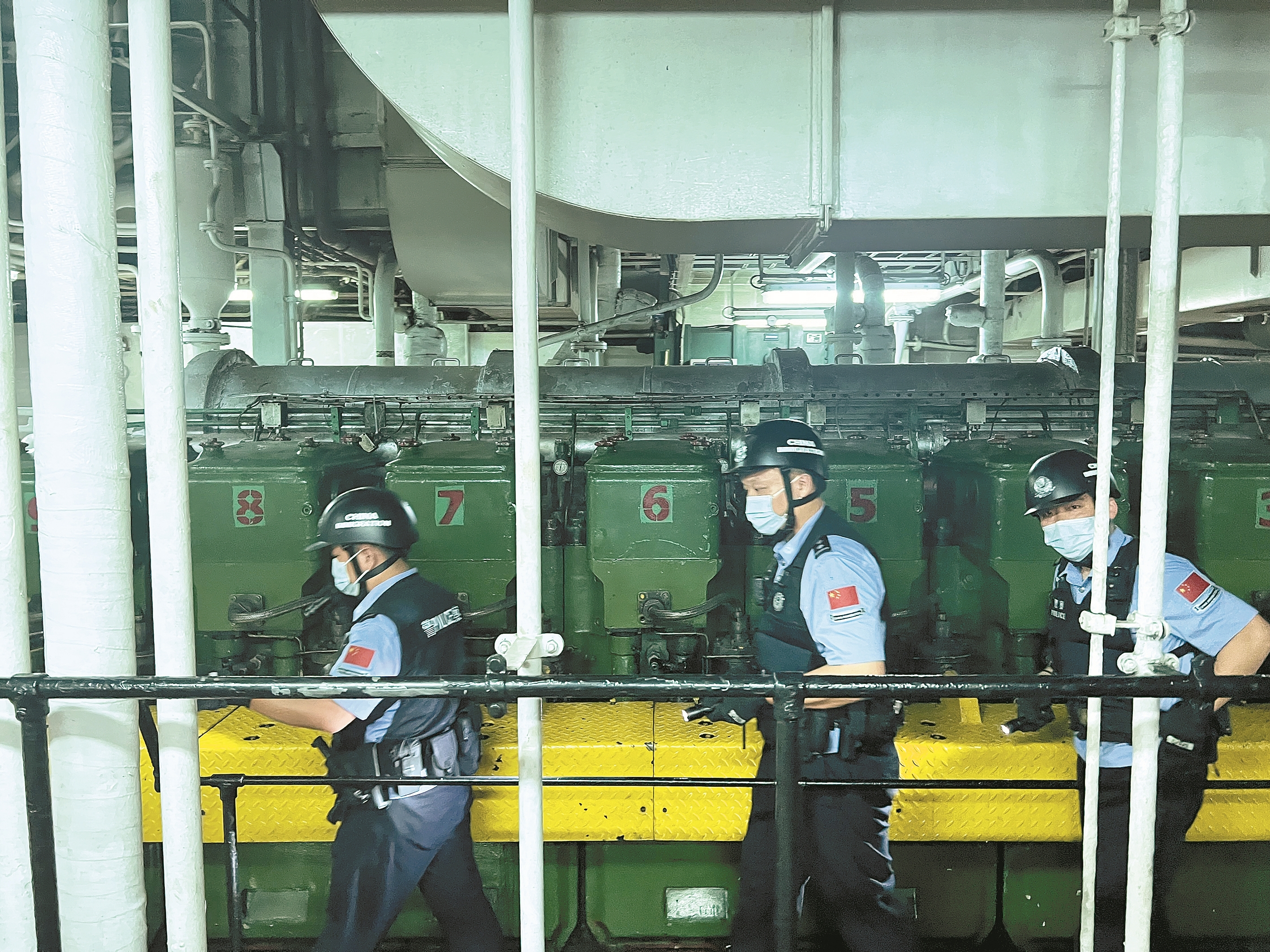 秦皇岛出入境边防检查站民警登轮检查。