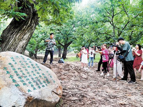 7月26日,游客在青龙满族自治县肖营子镇古栗林参观千年古栗树。 张宝摄