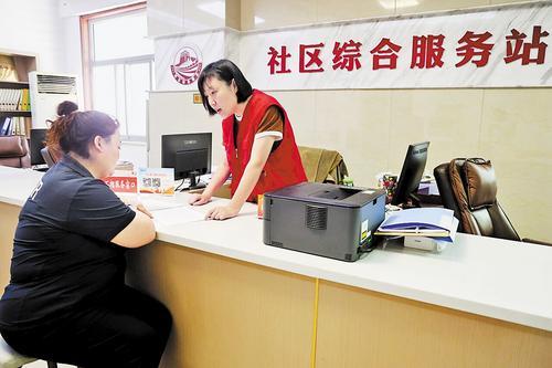 近日,在保定市新市场街道阳光水岸社区综合服务站,工作人员向企业办事员讲解相关政策。 李子旭摄