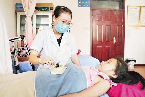 8月6日,在保定市清苑区北店乡卫生院,中医医师在为儿童患者进行脐灸治疗。 刘 鹏摄