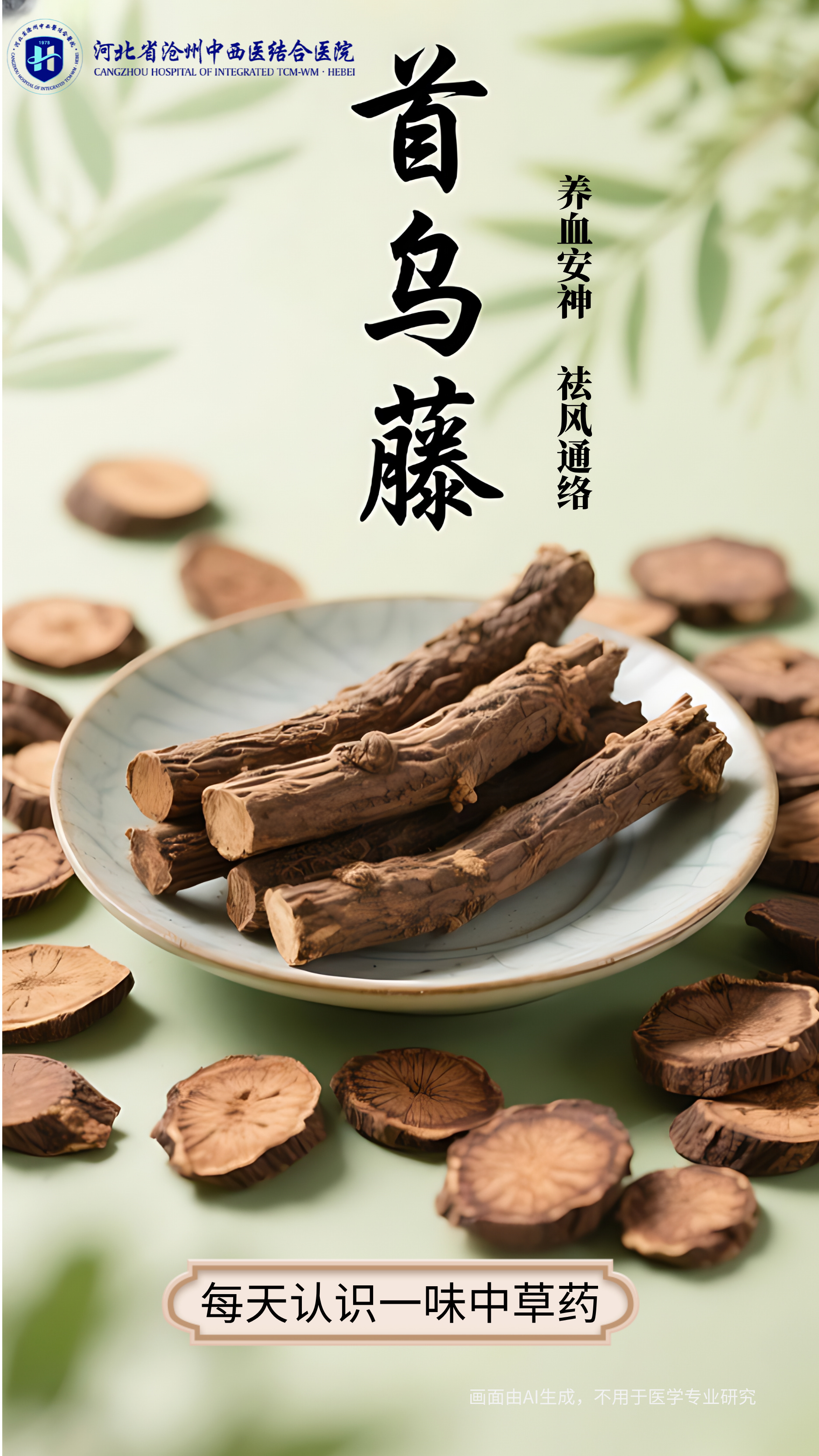首乌藤:味甘,性平,归心、肝经。具有养血安神、祛风通络的功效。主治失眠多梦、血虚身痛、风湿痹痛、皮肤瘙痒等。临床上多用失眠多梦、血虚身痛、风湿痹痛、皮肤风疹等。