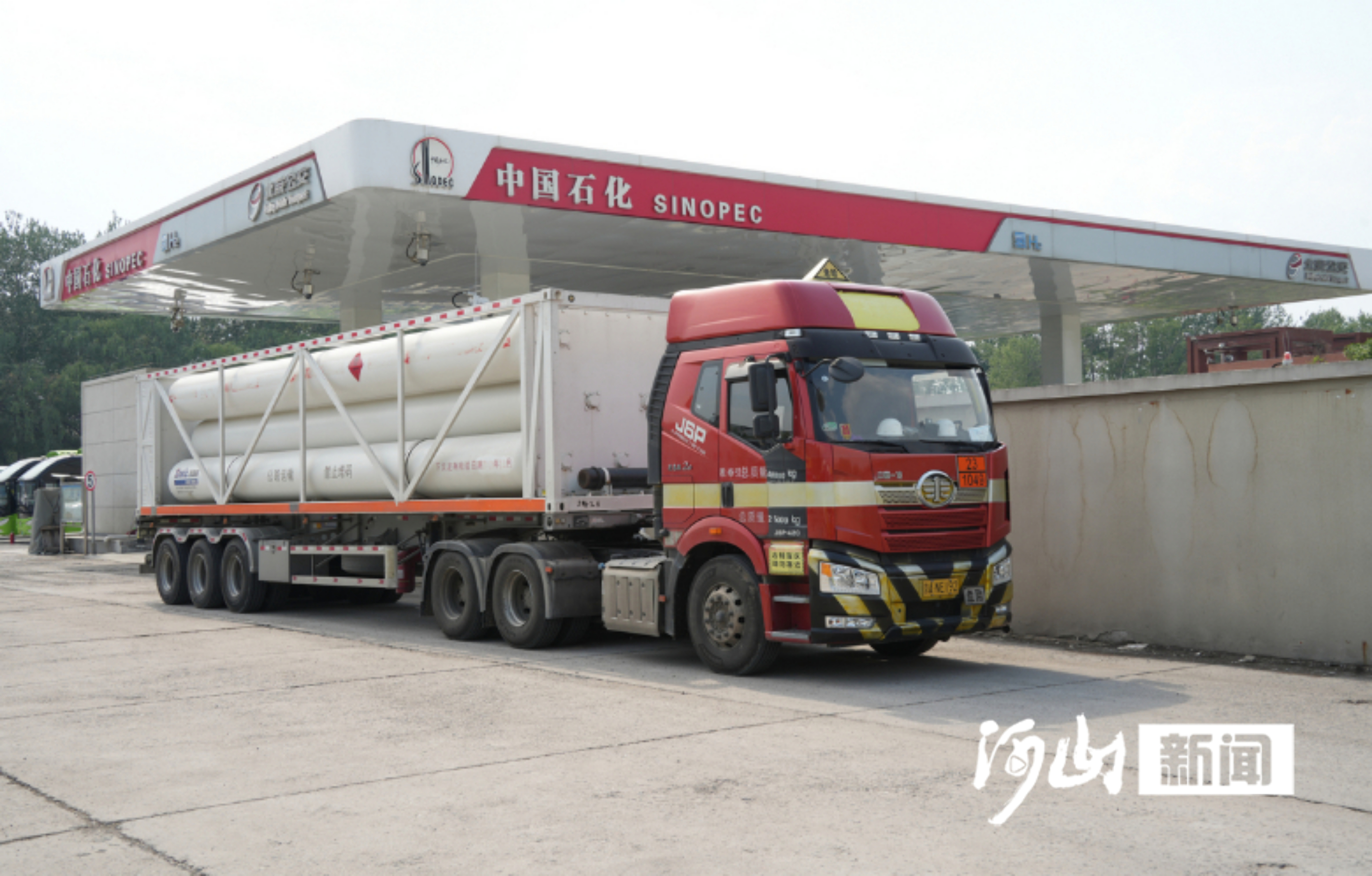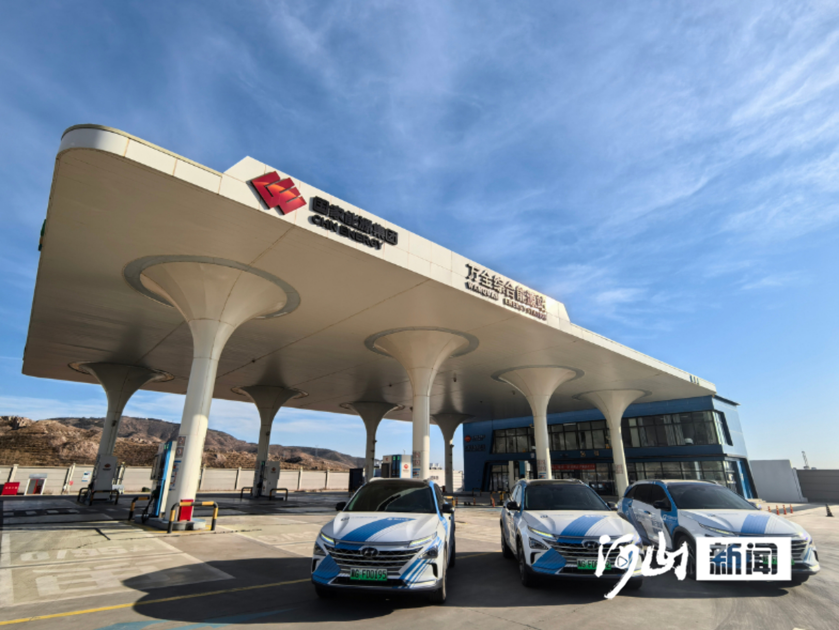 这里除配备加油机和快速充电桩外,还配备了国家能源集团自主研发的国内首个满足国标要求的加氢设备,日加氢1200公斤,满足了氢燃料电池公交车、氢燃料电池冷链物流车、氢燃料电池运动型多功能车等多种能源驱动类型车辆的补给需求。