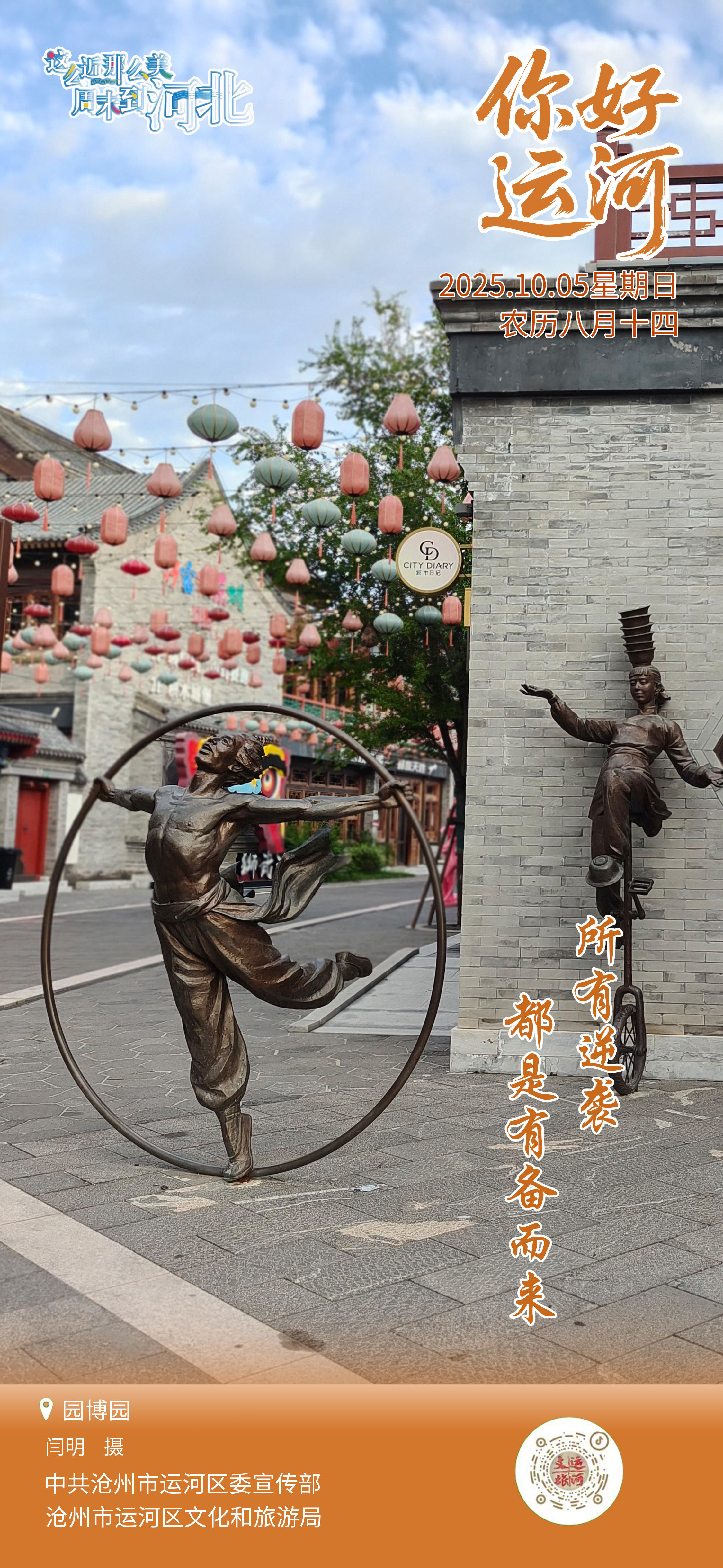 沧州市运河区,是全国唯一以运河命名的县级行政单位。区域内文化旅游资源丰富,园博园、人民公园、南川楼文化街区、百狮园、运河公园串珠成线,中国大运河非遗展示馆、沧州坊、工人文化宫、沧州大化工业遗存文化区应运而生,文庙、水月寺、清风楼、运河码头等珍贵历史遗迹星罗棋布,沧州西部新城“一场五馆”(沧州体育场、博物馆、规划馆、图书馆、体育馆、展览馆)大气恢弘,名人植物园、狮城公园、沧州印象·大运河农业生态文化产业园遥相呼应……