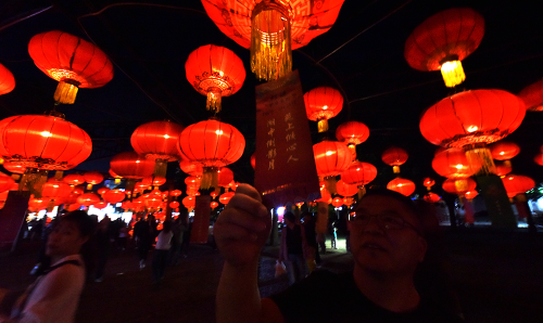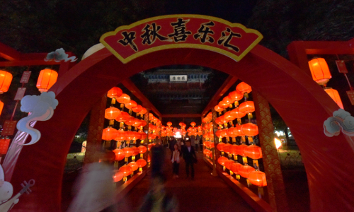 游客徜徉在河北省张家口市宣化区“中秋喜乐汇”灯谜会上。陈晓东 刘晓梅 摄
