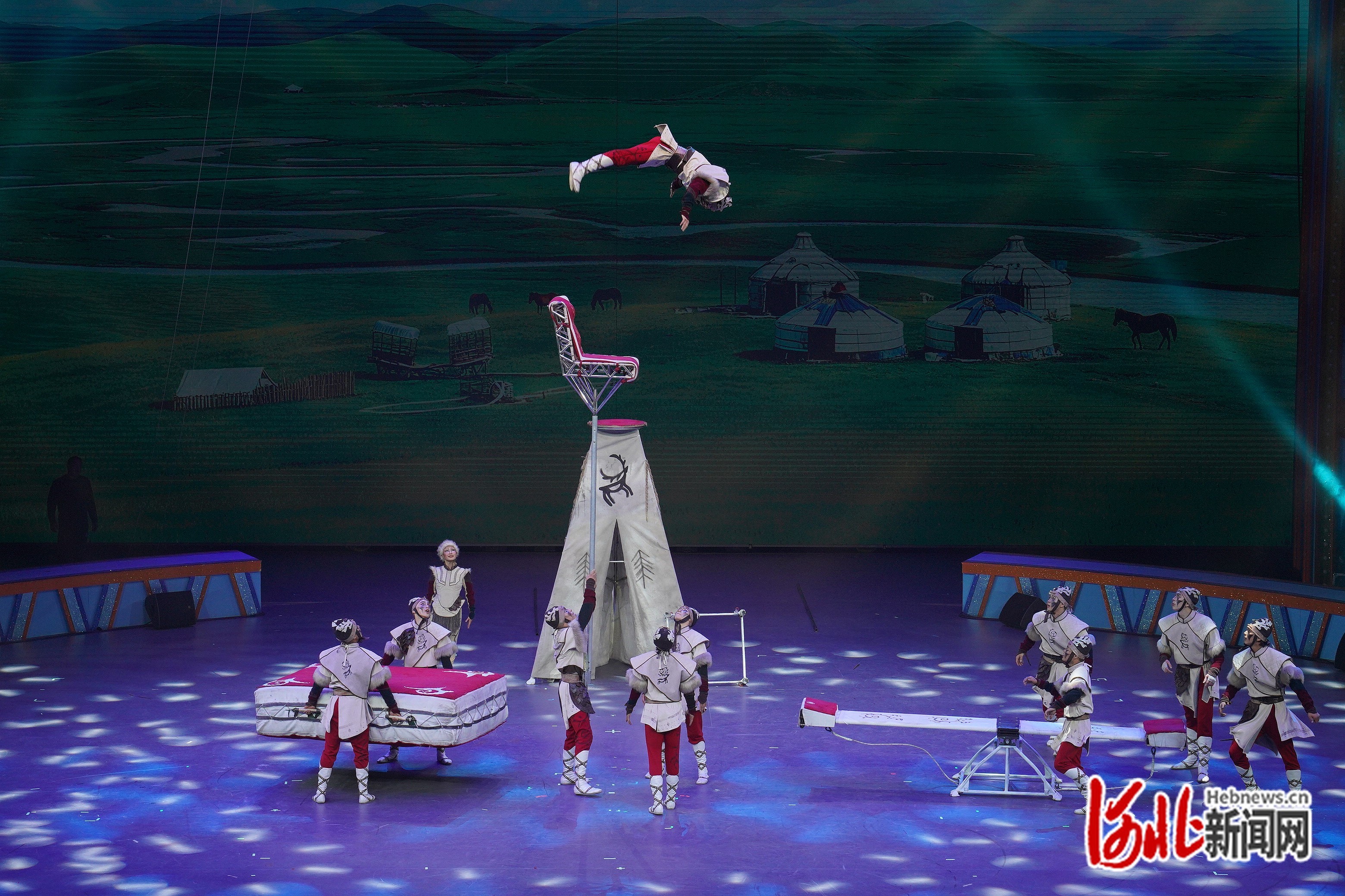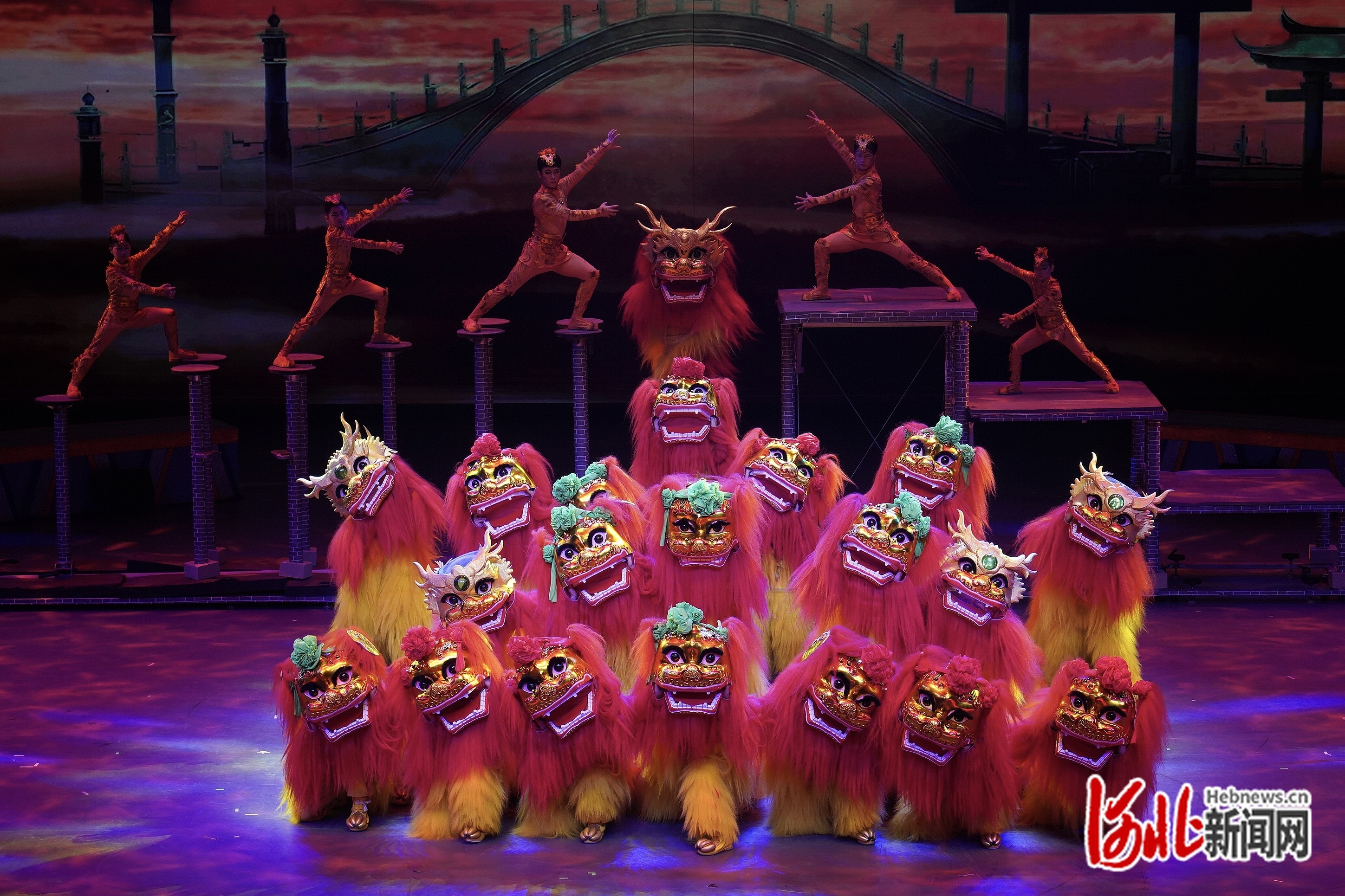 河北省杂技团和沧州杂技团带来的《祥狮跃九州》节目。张文进摄
