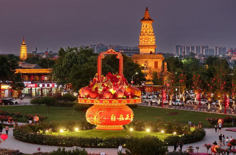 2025年5月14日拍摄的正定古城夜景。新华社记者 杨世尧 摄