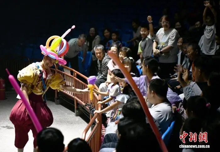 10月5日,游客在河北石家庄正定古城与滑稽小丑互动。国庆中秋假期,第二十届中国吴桥国际杂技艺术节国际马戏嘉年华正在这里精彩上演。中新社记者 翟羽佳 摄