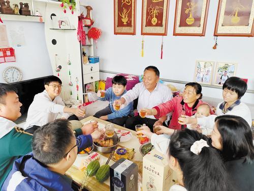 10月6日中午,新河县南马庄村村民孙良合一家在吃团圆饭。本报记者 贾东亮摄