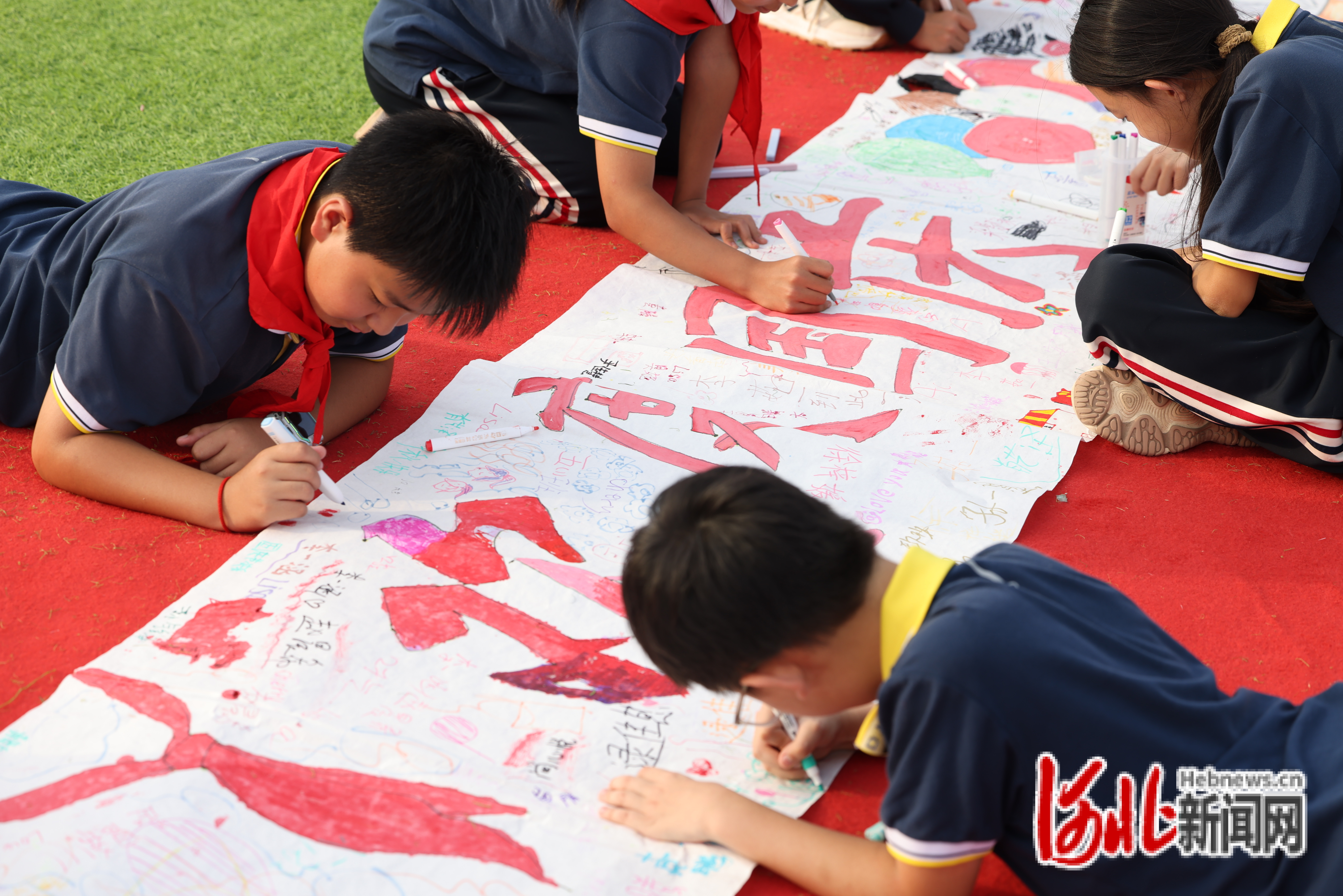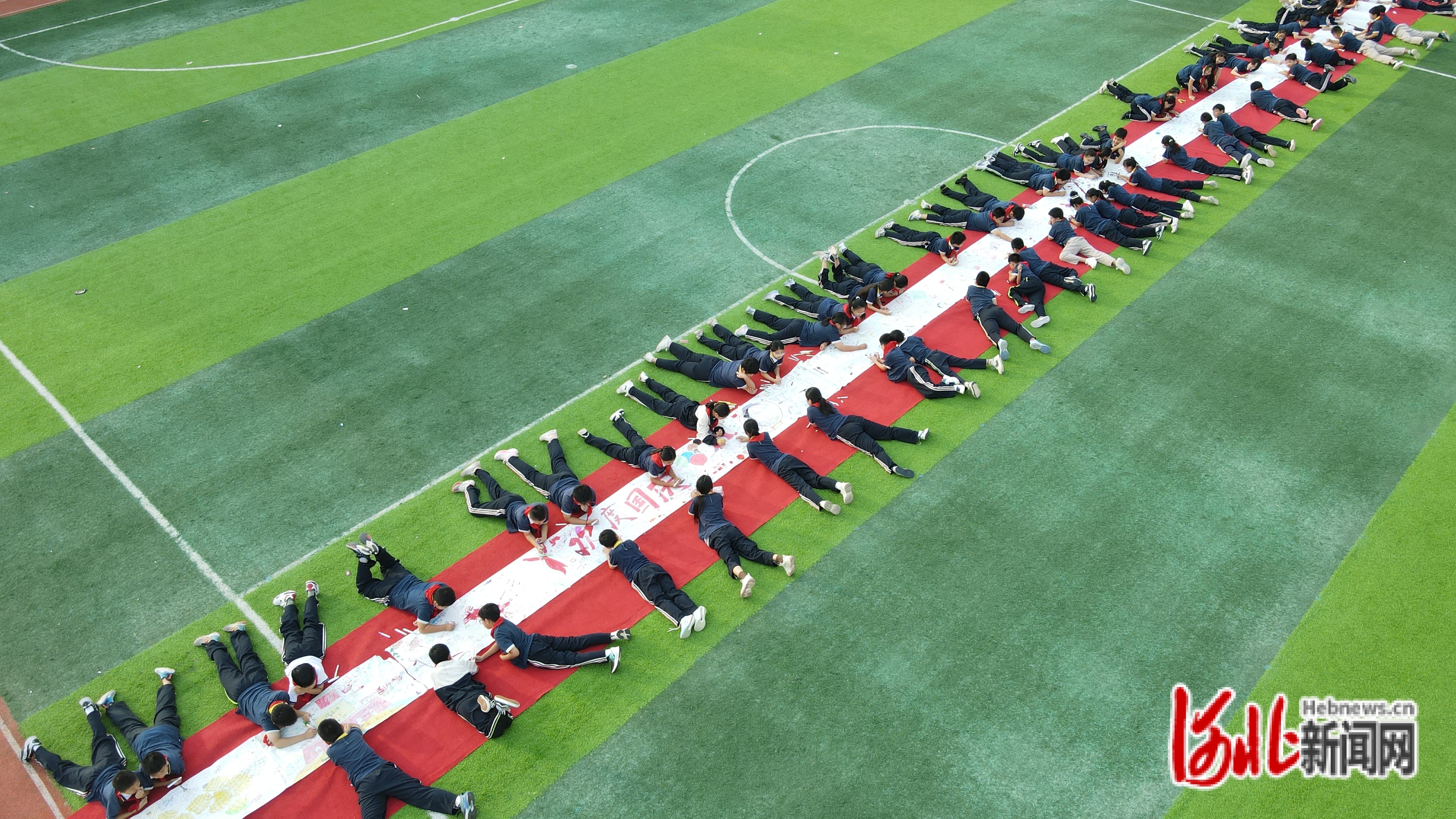 平乡县第一小学在操场上举行了别开生面的迎国庆主题绘画活动。学生们齐聚操场,共同绘制一幅百米长卷,以童真的画笔表达对祖国的热爱与祝福。