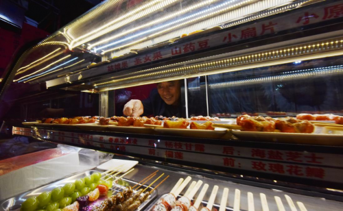 摊位经营者整理传统多口味冰糖葫芦。陈晓东 摄