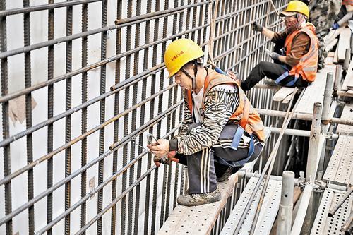 近日,中铁二十局集团工人在石家庄市地铁5号线一期工程和平医院站建设工地绑扎钢筋。