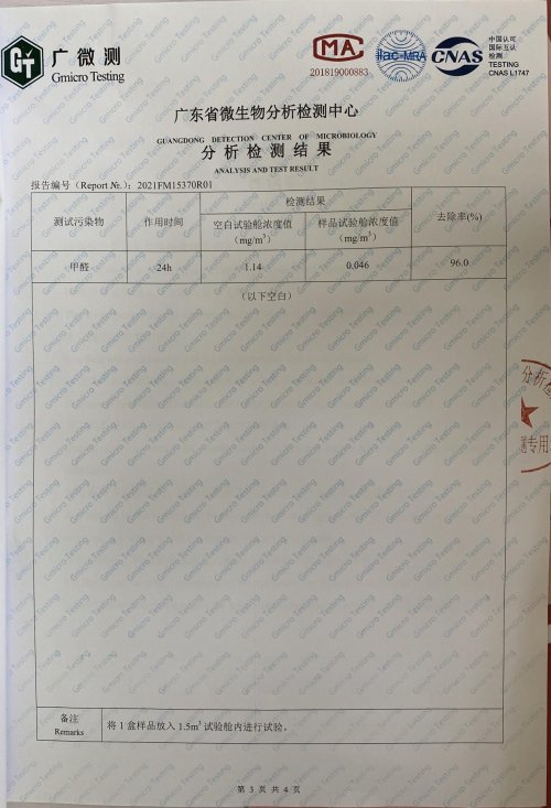 光催化效率:叶广泥中的光催化剂,采用优质选材,不需要紫外线或者强光激活,就可以直接发挥作用,吸附后有效分解。室内环境完全满足分解条件,实际催化分解效果高达96%甲醛去除率,98%甲苯去除率,非常优秀!
