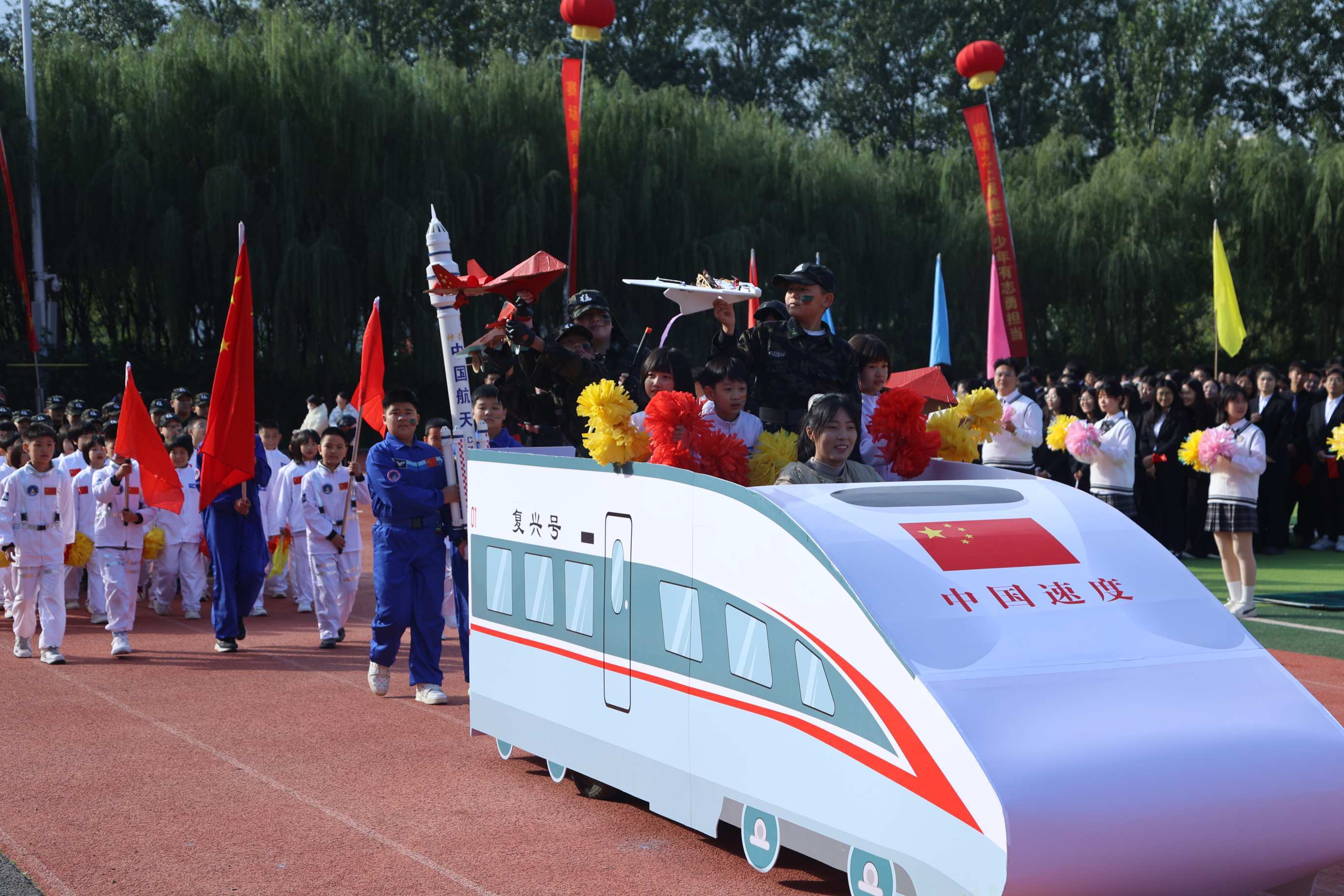爱国情怀涌动全场。从“我爱你中国”的深情告白,到“复兴号”高铁模型、火箭模型的精彩呈现,英华学子的步伐与时代的脉搏同频,英华学子的青春与祖国的荣光共振。