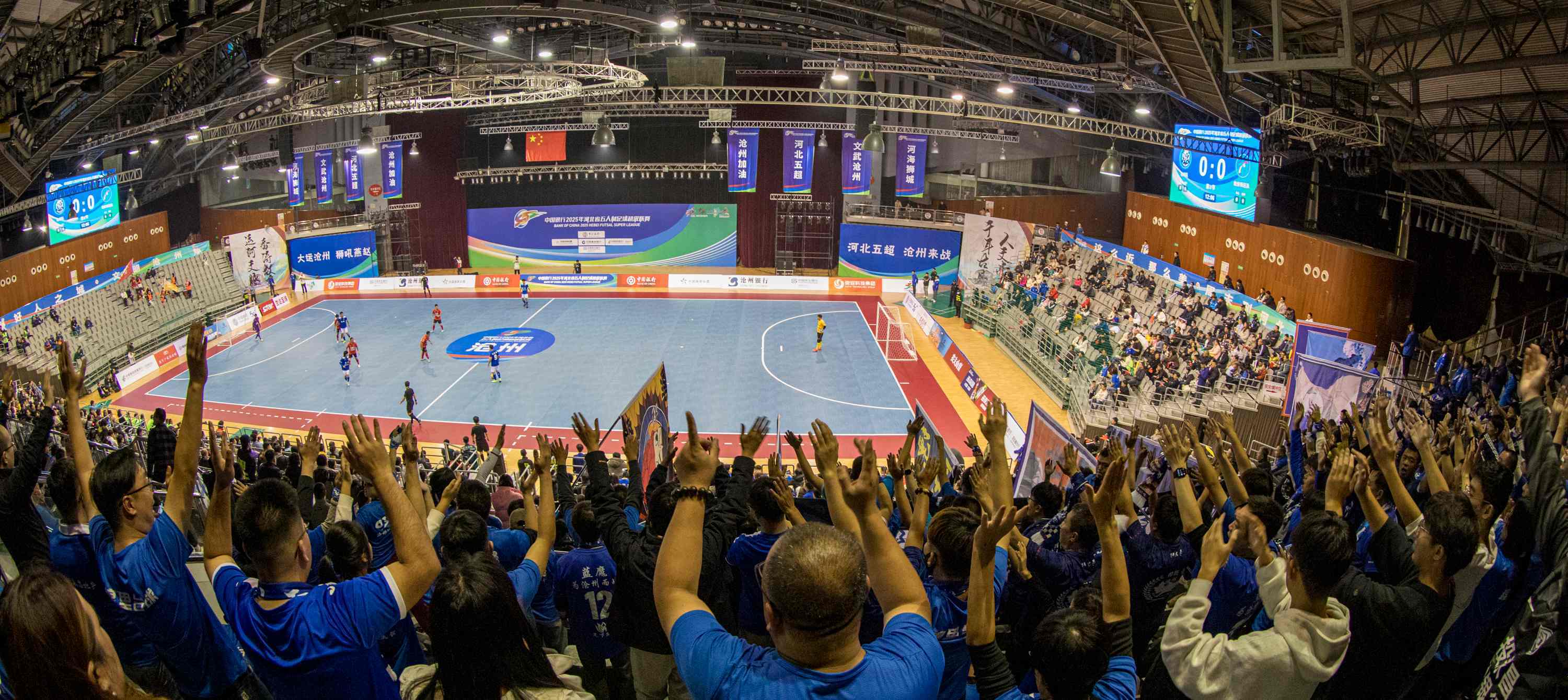 10月25日晚,2025年河北省五人制足球超级联赛第11轮,沧州队主场对阵雄安新区队,比赛紧张激烈,距终场尾声沧州队实现逆转,以二比一赢得比赛。(吕国良 摄)