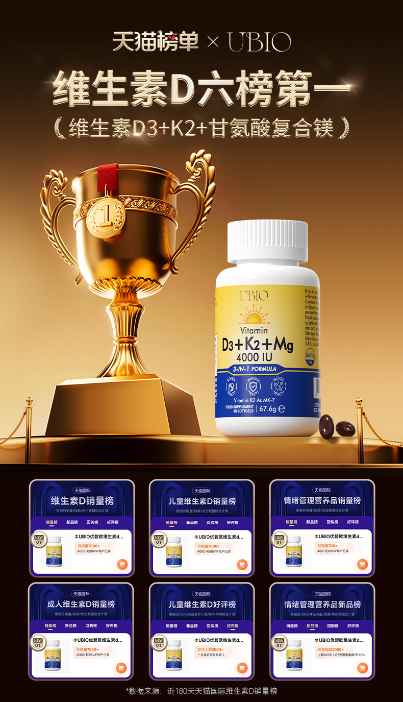 2025年“双十一”健康保健品预售正式开启,“补维生素D”成为今年健康赛道的关键词。根据天猫健康类目数据,维生素D相关产品搜索量同比上涨138%,其中来自欧洲的科学营养品牌——UBIO优碧欧维生素DK镁 以其“D3+K2+镁”三合一科研配方,领跑维生素D热销榜单,成为今年“双十一”补维D品类最受关注的明星单品。