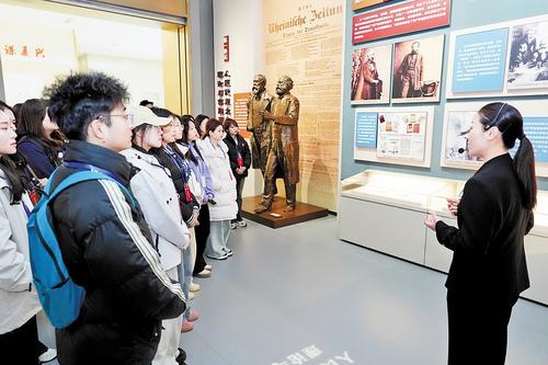 10月23日,河北经贸大学师生在人民代表大会制度在河北的探索与实践历程展馆参观。 本报记者 刘冰洋摄