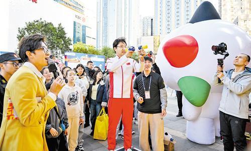 11月1日,奥运会冠军、河北射击名将杨皓然(右三)进行射击游戏。当日,“全民全运 体彩添彩”主题活动在石家庄市举行。在活动现场,奥运会冠军、河北射击名将杨皓然与现场幸运观众一起体验了趣味体育运动,共享运动带来的欢乐。本报记者 耿辉摄