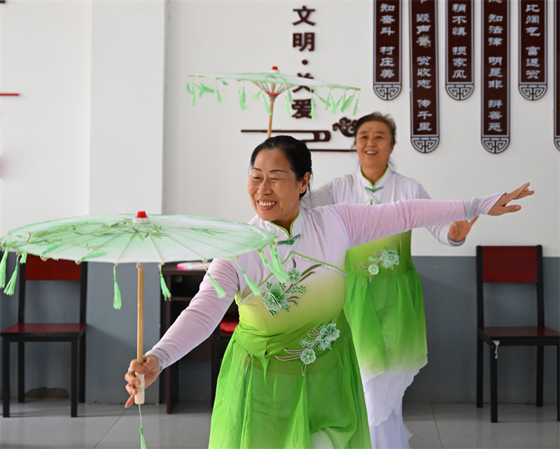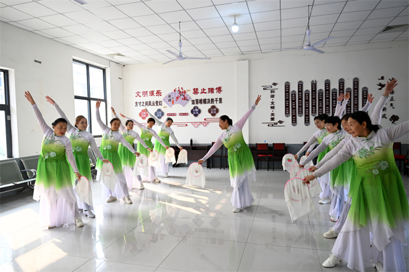 10月24日,定州市银龄之家日间照料中心的老人在排练舞蹈。