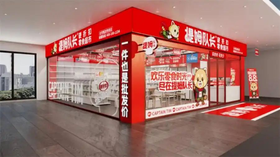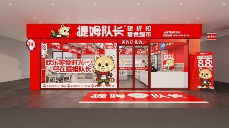 下沉市场已成为零食行业的“增长压舱石”,2024年市场规模达1.26万亿元,且量贩零食渠道占比超40%,县域门店成为布局核心。提姆队长精准适配下沉市场消费特征,打造“小而美”的门店模型,选址聚焦县城核心商圈、社区周边,面积控制在50-100㎡,大幅降低租金与运营成本。