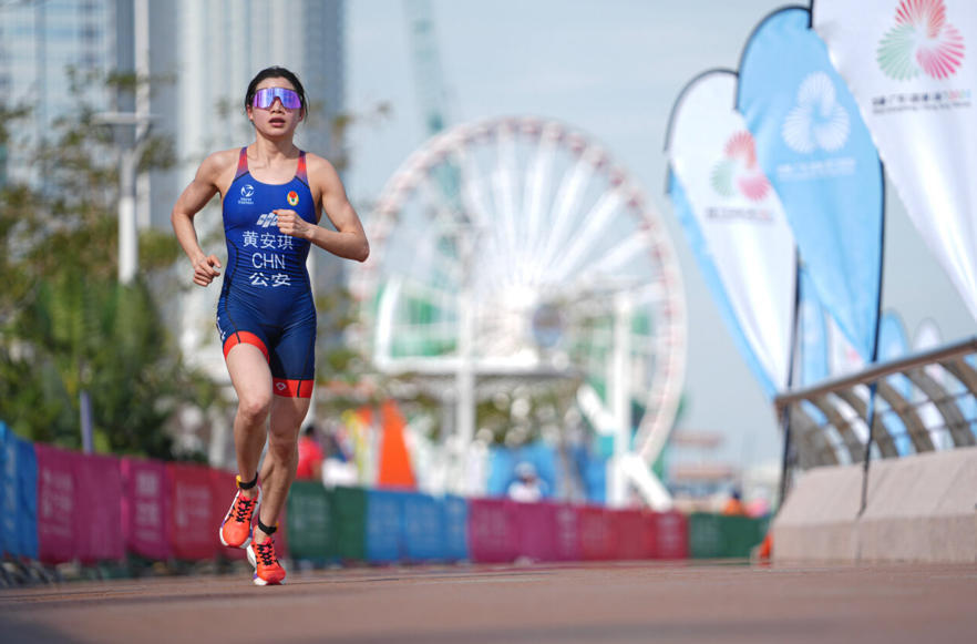 在香港赛区进行的铁人三项女子个人赛上,河北省与中国公安体育协会联合培养的运动员黄安琪开赛后就遭遇挑战,全程1.5公里的游泳比赛过后,她在41名参赛选手中仅列第15位。在随后的骑行阶段,黄安琪一点点扳回劣势,排名不断提升。在以第4名完成骑行后,黄安琪快速转换,一路飞奔,最终率先冲过终点线,以1小时59分16秒的成绩获得金牌,成功卫冕。
