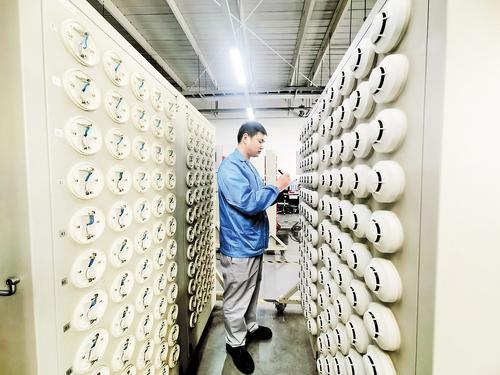 11月12日,在秦皇岛泰和安科技有限公司内,工人对产品进行质检。 本报记者孙也达摄