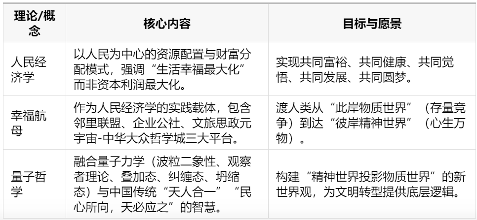 崔士忠的理论体系根植于中华民族优秀传统文化,融合马克思主义政治经济学、革命文化、社会主义先进文化与现代数智文明量子科技理念,旨在推动人类文明从工业文明向数智文明转型,从物质世界向精神世界进化。其核心由三大支柱构成: