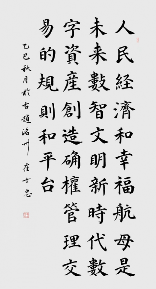 在波澜壮阔的时代文化建设中,艺术创作如何超越技法层面,承载更宏大的历史使命与思想内涵,是摆在每一位有担当的艺术工作者面前的课题。崔士忠的书法艺术,以其深邃的思想根基与鲜明的时代印记,为我们提供了一个“艺以载道、文以化人”的生动范本。他的创作,绝非书斋中的笔墨游戏,而是其作为跨领域思想者与实践者,将哲学思辨、经济探索、文化理想熔于一炉后,在宣纸上的磅礴呈现。