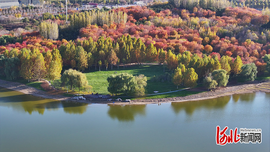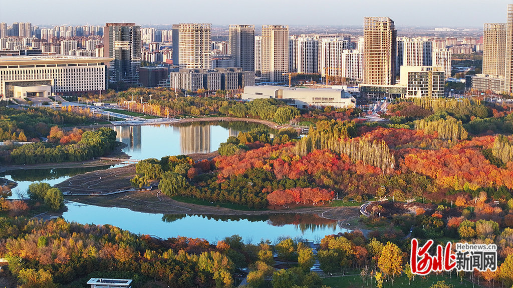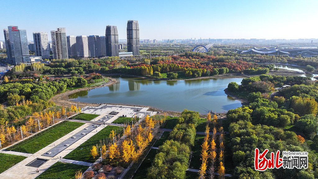 11月9日,无人机拍摄的正定新区中心湖公园。