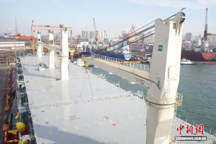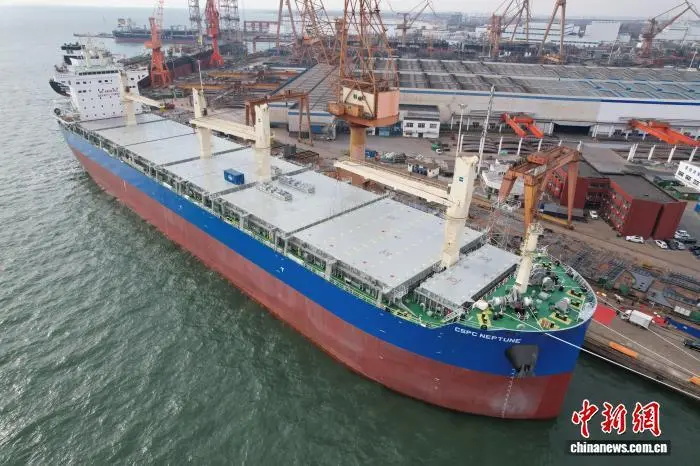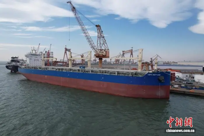 图为命名交付的8.45万吨级多用途纸浆船“CSPC NEPTUNE”(海王星)轮。(无人机照片)王继军 摄