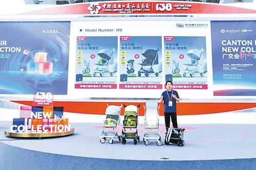 前不久举办的第138届中国进出口商品交易会(广交会)上,小卡布儿童用品有限公司总经理王占营向台下数百位海外采购商介绍自己的新产品。 王占营供图