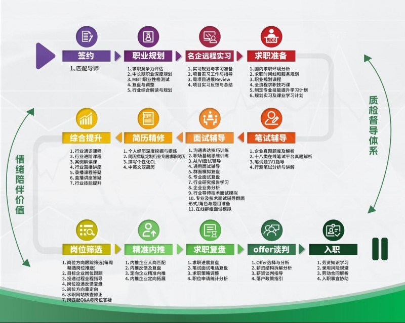 在调研各家机构的服务承诺时,我们发现了一个根本性的区别:有些机构将服务的终点定位于“求职过程结束”,而有些则明确承诺“拿到满意Offer并成功入职”。