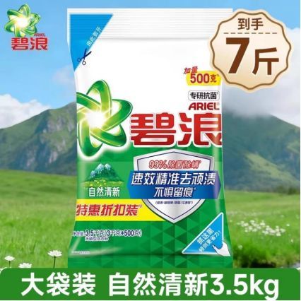 碧浪洗衣粉的“污渍自溶技术”可打碎分解污渍结构,使其自动溶解,无需用力搓洗即可除顽固污渍,保护衣物纤维。细分滚筒、波轮专用款,低泡易漂省水省电,植物增艳因子让彩衣艳丽、白衣透亮。