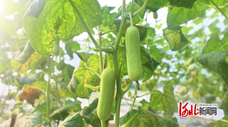 迁安市亚滦湾农业公园温室大棚内,奶油白玉黄瓜长势喜人。王志斌摄