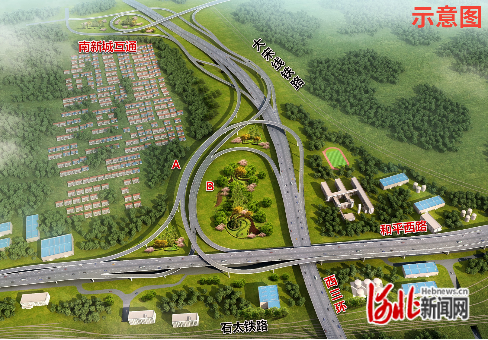 和平路与西三环互通立交工程示意图。石家庄城发投集团供图