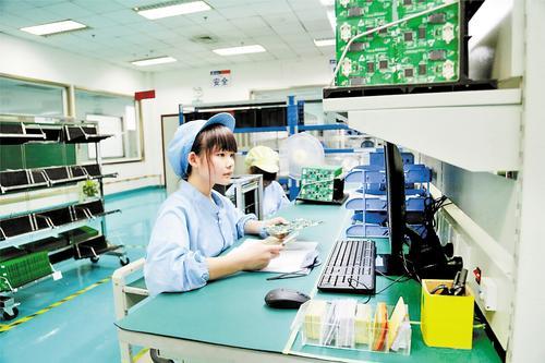 11月21日,在航天信息股份有限公司涿州分公司,工作人员在检测电子芯片性能。