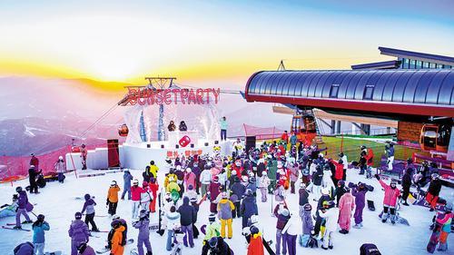 11月23日,雪如意滑雪场举办落日派对,多样的冰雪活动吸引了众多年轻人参与。 本组图片由张家口兴垣体文旅运营管理有限公司提供