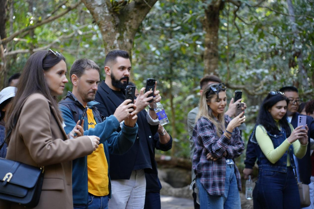 与此同时,另一支考察团则沿着“昆明-普洱-西双版纳”线路一路向南,从春城走进热带雨林,探寻北回归线上的绿色奇迹。在普洱那柯里茶马古道驿站,嘉宾们踏上斑驳的石板路,聆听马帮铃声的回响,感受昔日商贸通道的历史厚重。走进普洱太阳河国家森林公园,嘉宾们近距离观察犀牛、小熊猫等珍稀动物,对云南在生物多样性保护方面的努力给予高度评价。在西双版纳,嘉宾们走进中科院西双版纳热带植物园,奇异的花卉与参天的绞杀榕构成了神秘的植物王国,让嘉宾们大开眼界。而在傣族园,考察团参观精美的干栏式建筑,并观看泼水节活动,在水花飞溅与欢声笑语中,真切体验到傣族人民热情好客、与自然和谐共生的生活方式。
