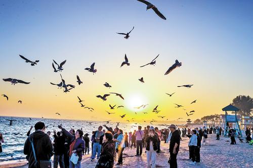 11月28日,北戴河老虎石海上公园里,游客与海鸥欢乐互动。 吴宇涛摄