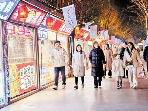 在摩天轮东侧不远处,就是近几年爆火的秦皇小巷。时值严冬,秦皇小巷里依然人头攒动,特色美食小店里升腾起烟火气,三五成群的游客或边走边品尝地道美味,或驻足文创商店挑选心仪好物。“这里很有特色,既有古典美,又有现代气息,关键是各色特色小吃让人回味无穷。”来自辽宁省葫芦岛市的游客李丽说。