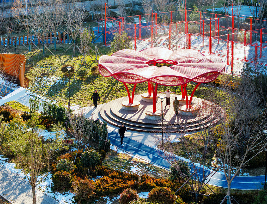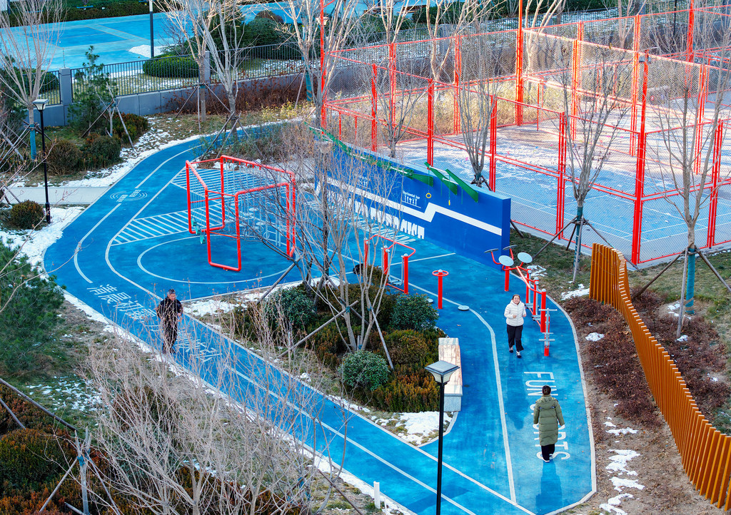 12月25日,市民在石家庄市新建口袋公园“晨曦园”健身。