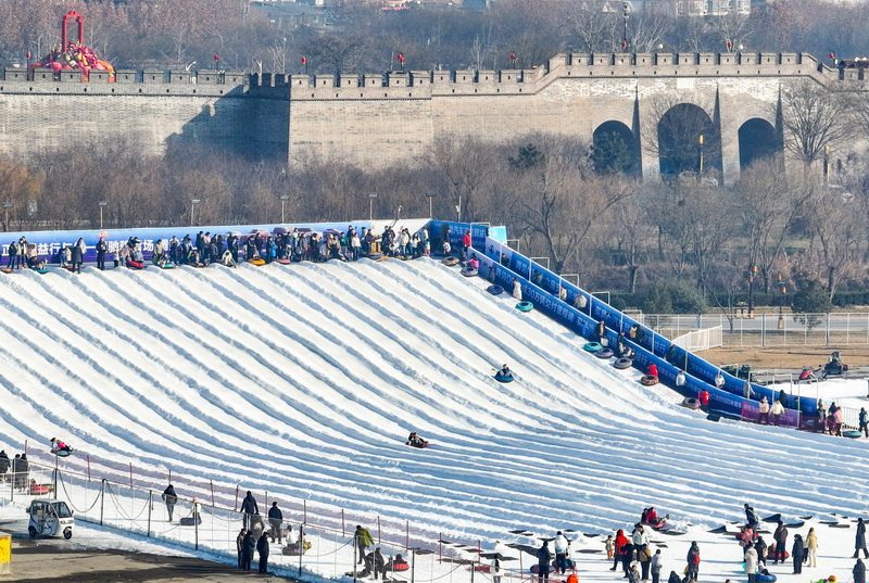 12月28日,游客在正定县长乐门广场冰雪嘉年华游玩。