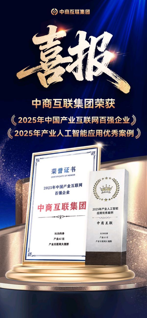 双喜临门!中商互联集团荣登2025年中国产业互联网百强榜,AI标王实力斩获产业人工智能应用优秀案例