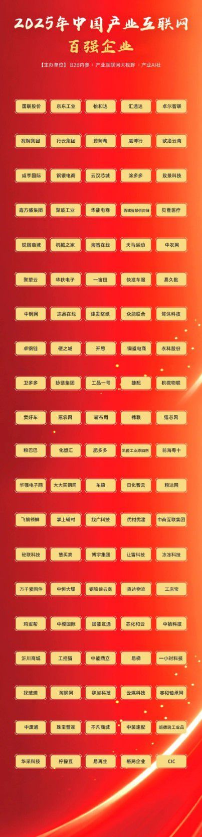 本次大会由产业互联网创新研究院主办,b2b内参、产业互联网大视野、人工智能创新岛联合承办,汇聚了产业互联网领域的上市公司领袖、独角兽企业创始人、百强企业掌舵人及知名投资机构资深投资人等行业精英,中商互联集团作为产业互联网领域的佼佼者受邀出席,与千余名行业精英共襄盛举。