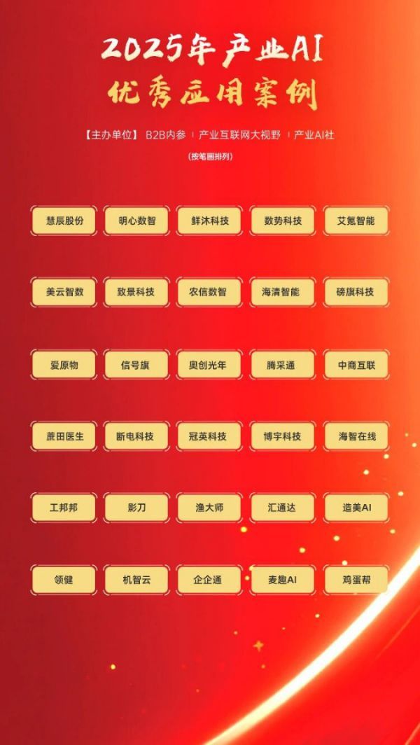 此前,集团已连续获评由产业数字化大会颁发的“2024中国产业数字化百强榜”及由中国产业AI领军企业大会颁发的“2025年中国产业互联网领军企业” 称号,此次再添双翼,实力彰显了集团在推动产业智能化进程中的领先地位与标杆价值。